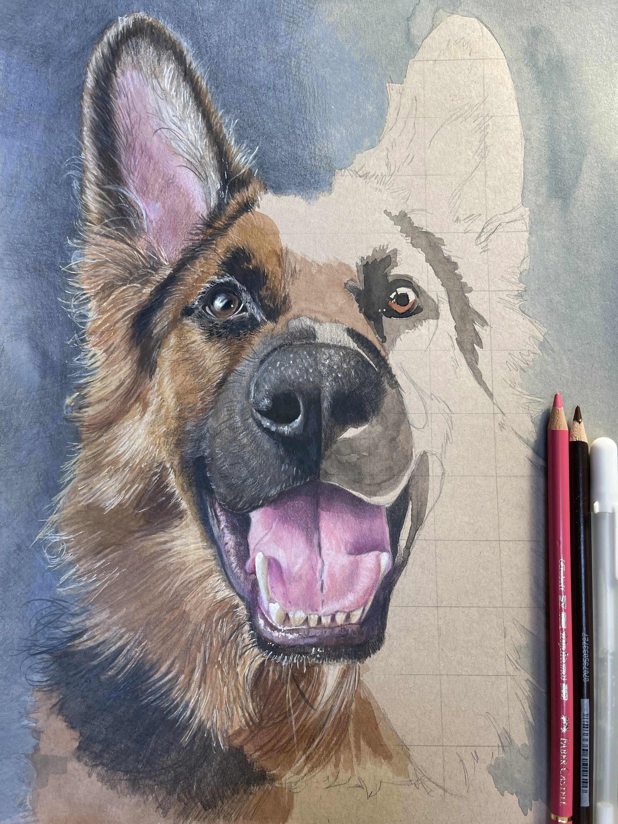 A combination of gouache paints and colored pencils together to created the best likeness of your loved one.